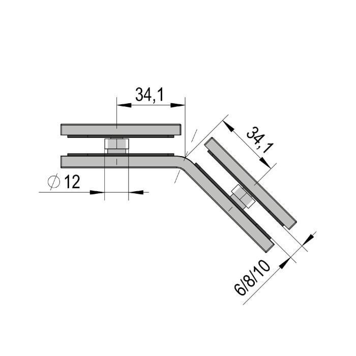 Angle connector Juna, brass, chrome polished, Glass thickness 6 / 8 / 10 mm, glass/glass 135°