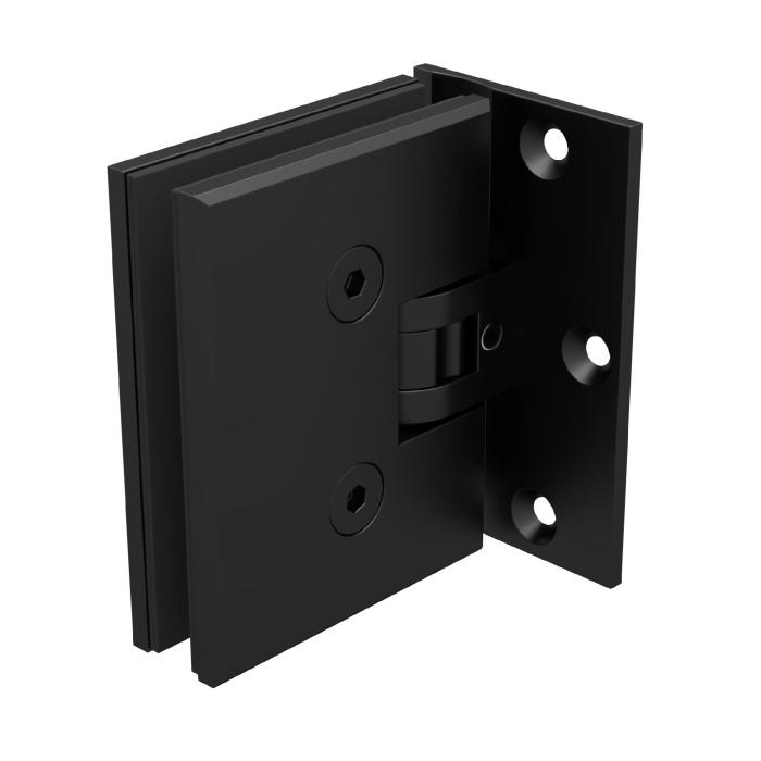 Glass door hinge Synera, single sided fixation, inox V2A, BlackLine RAL 9005 matt, Glass thickness 8 - 10 mm, glass/wall 90°