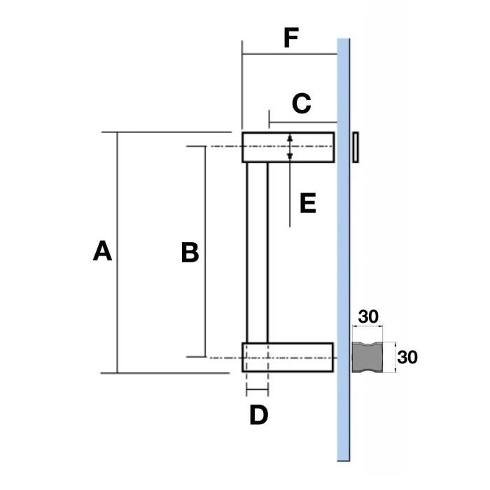 Handtuchhalter, 20 x 20 mm, L = 630 mm, Messing, matt velour, Glasstärke 6 - 12 mm, Glasmontage einzeln mit Knopf, zum Anschrauben