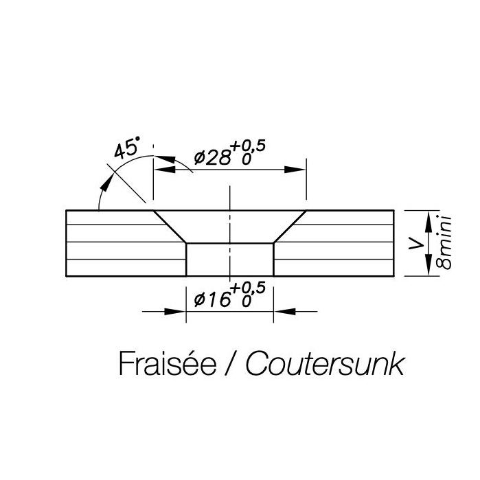 vis fraisée Ø 28 mm, hauteur 30 mm, non réglable, pour grands volumes