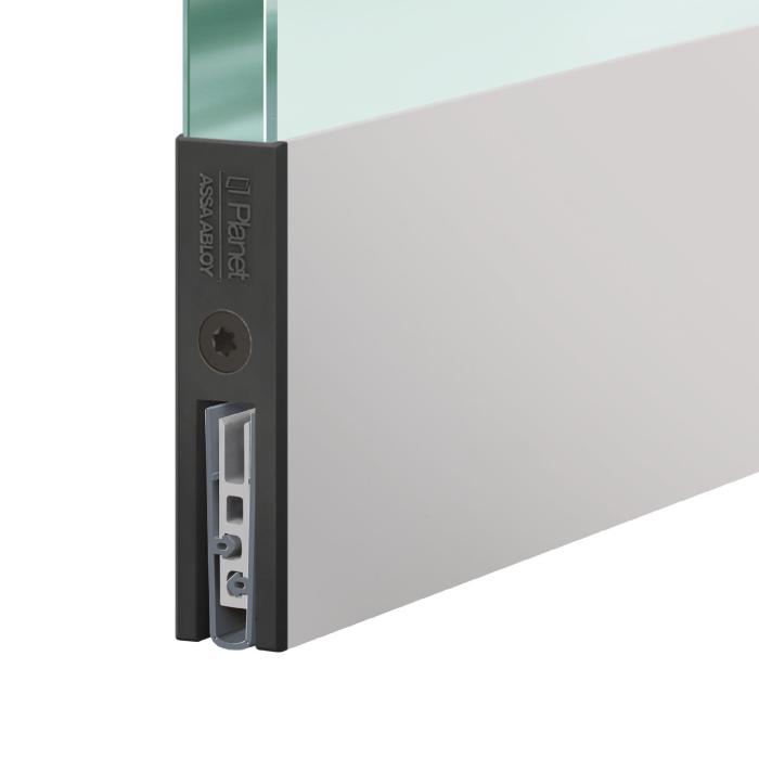 Charnière hydraulique EVO EV 835E11 N avec ferme-porte intégré, fermeture automatique à partir de 160°, aluminium, éloxé noir, Épaisseur du verre 8 - 19 / 21.52 mm, verre/mur, DIN gauche