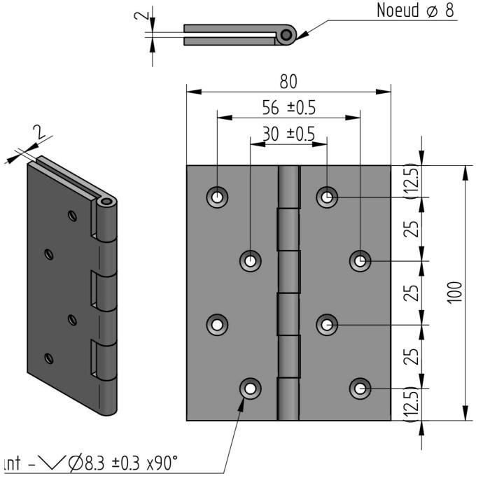 Charnière , 100 x 70 mm, laiton, chromé sur poli machine