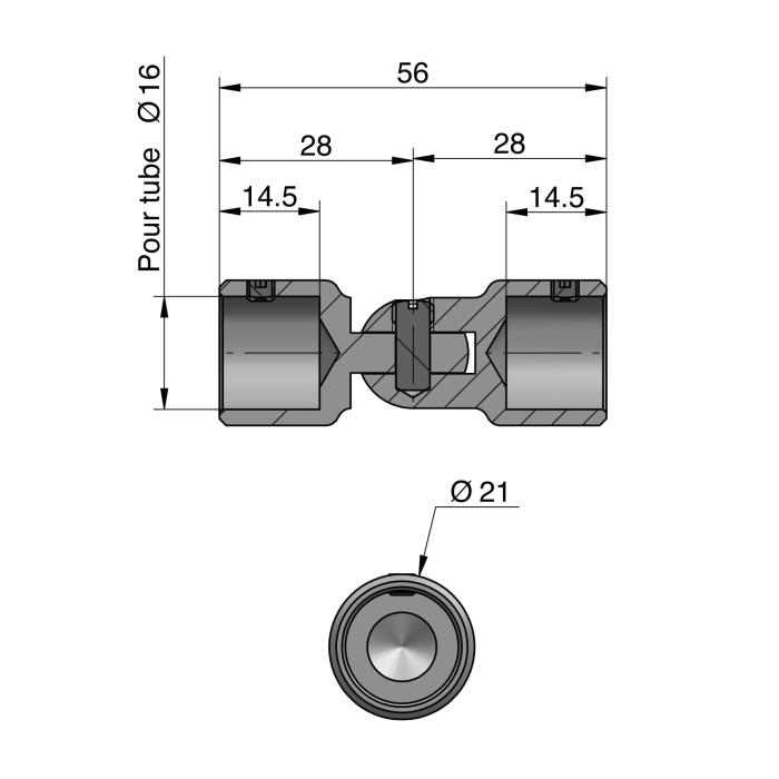 Elemento di connessione, liberamente regolabile, per tubo da 16 mm, ottone, effetto inox, tubo/tubo